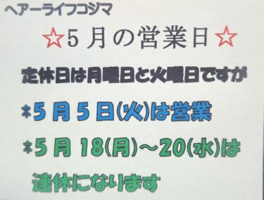 2026.5月の営業について 他